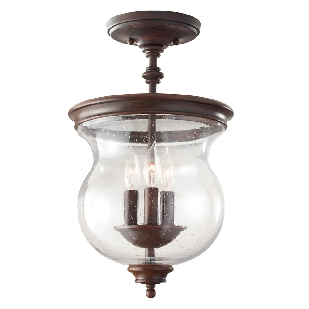 Rustikale Deckenleuchte mit kunstvollen Glas Schirm