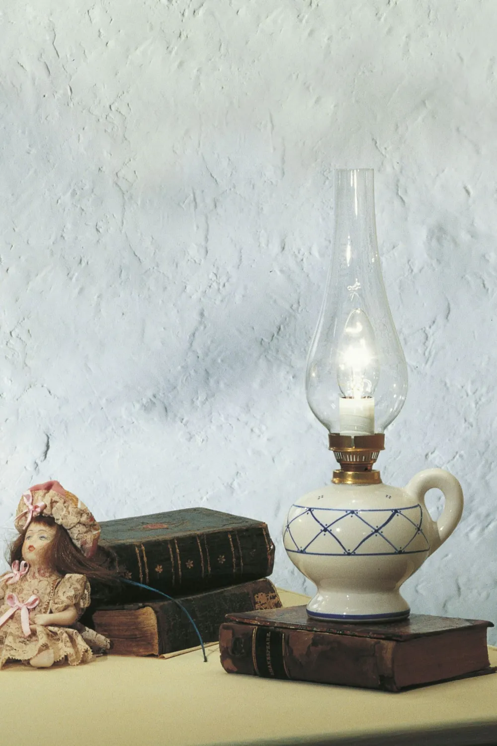 Edle Wandleuchte aus Keramik und Glas im Stil einer antiken Petroleumlampe