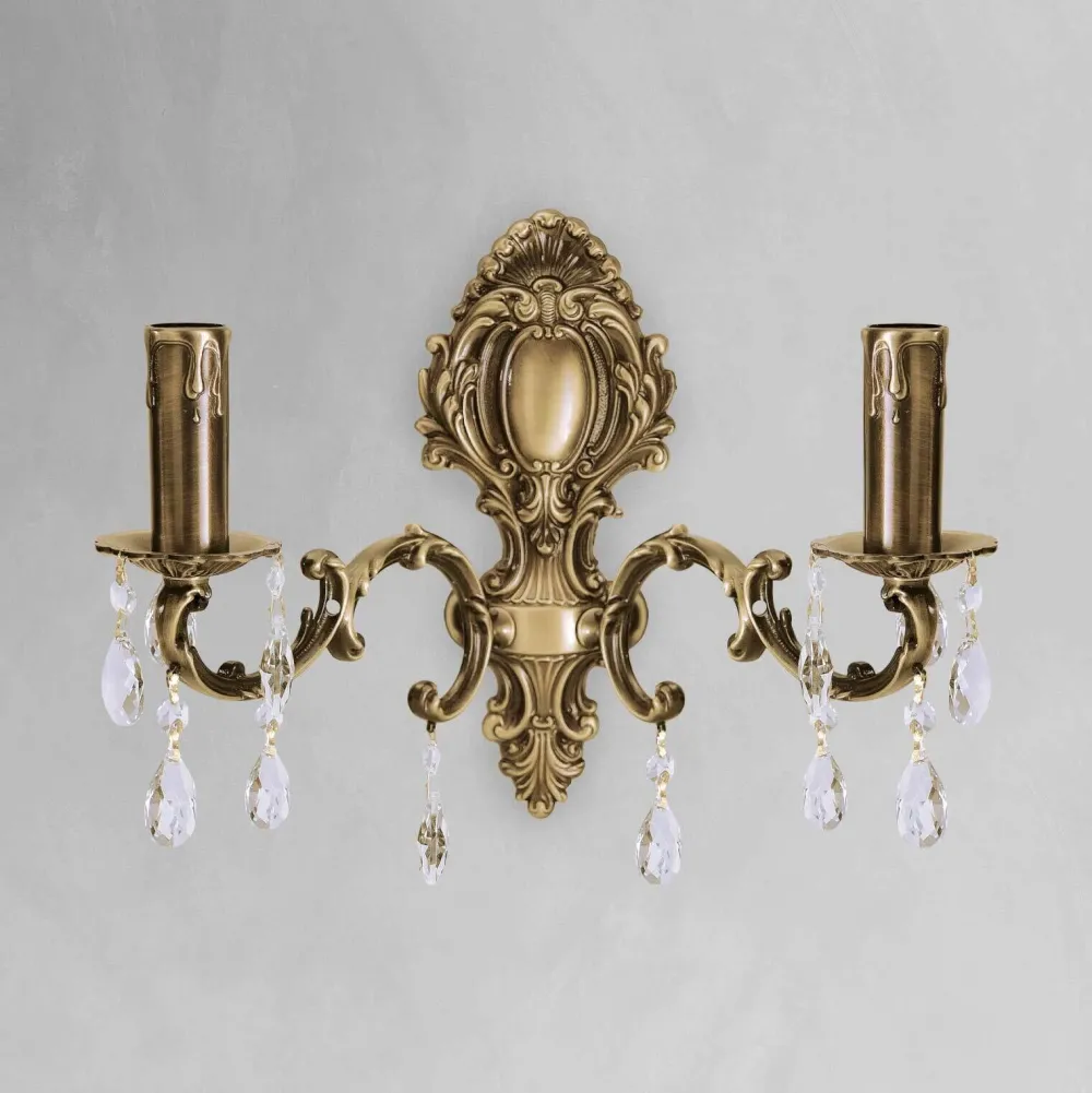 Die opulenten Verzierungen und funkelnden Kristalle verleihen der Wandleuchte einen edlen Charakter, der ideal in Schlafzimmer, Wohnzimmer und Flur passt