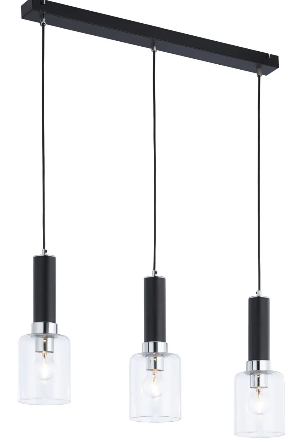 Moderne Hängelampe aus Metall und Glas in Schwarz und Chrom