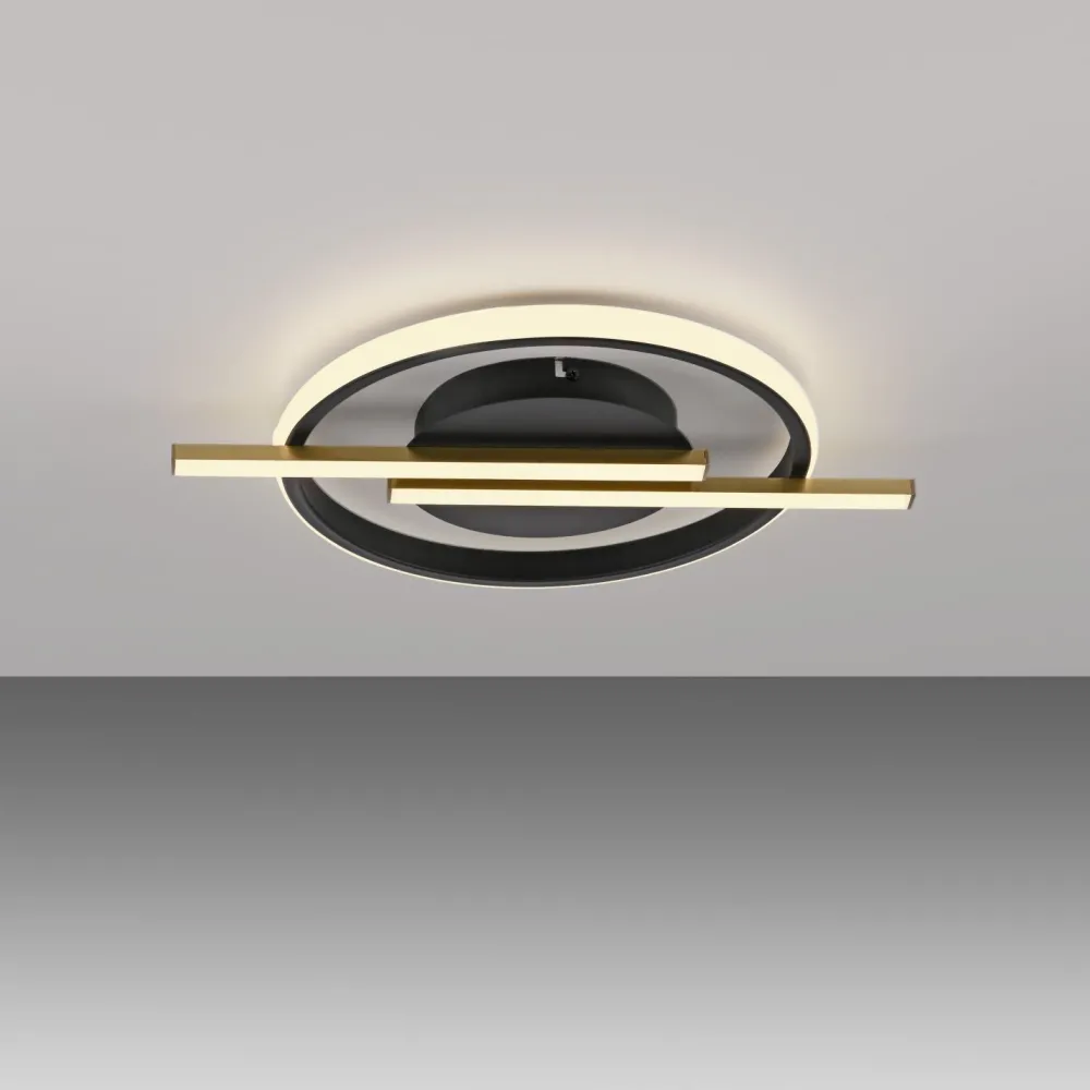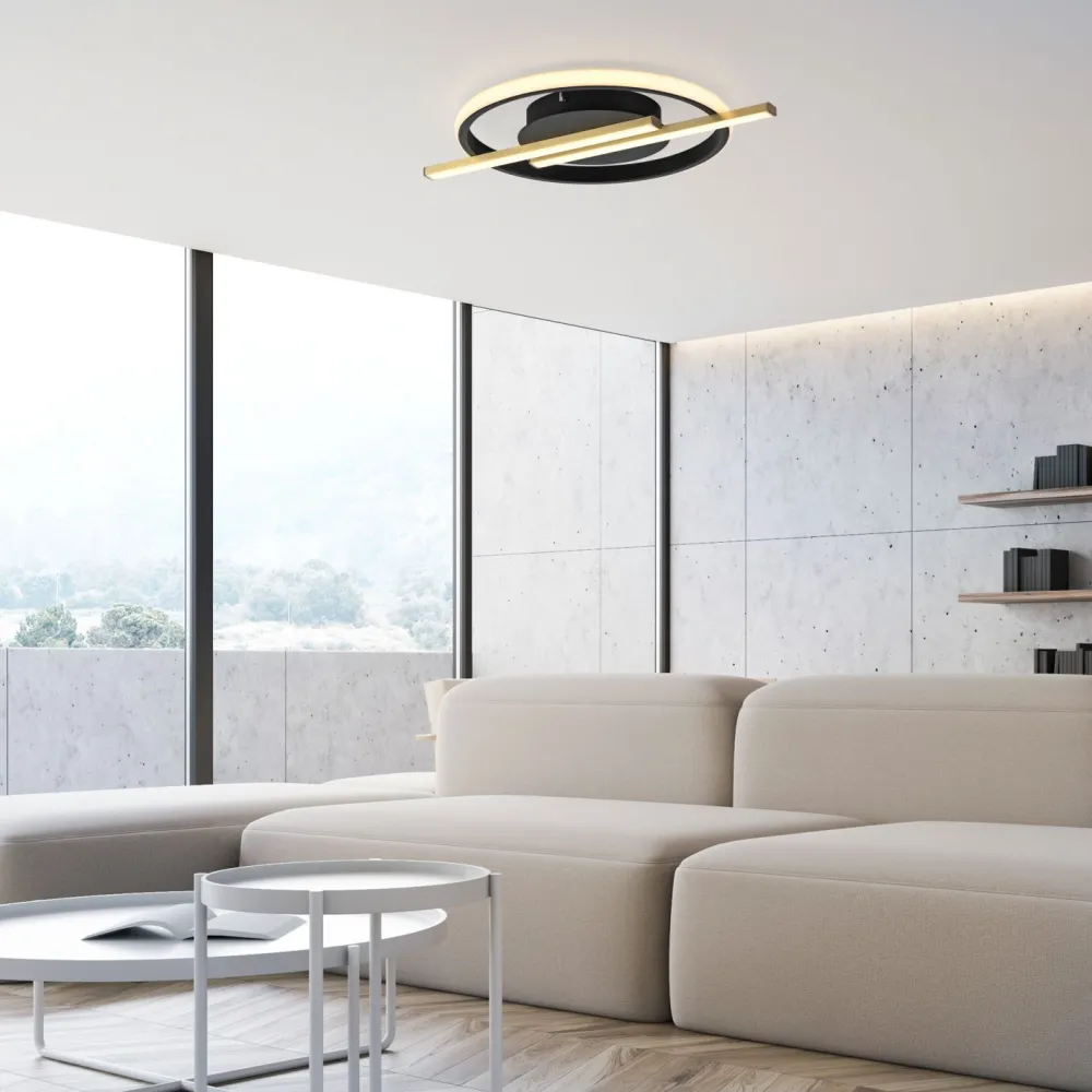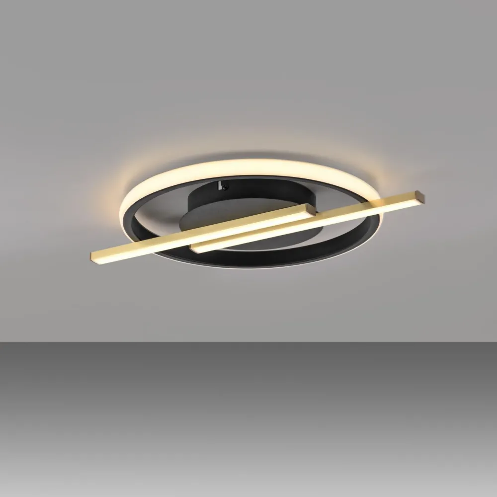 Moderne LED Deckenleuchte aus Metall in Schwarz und Messing