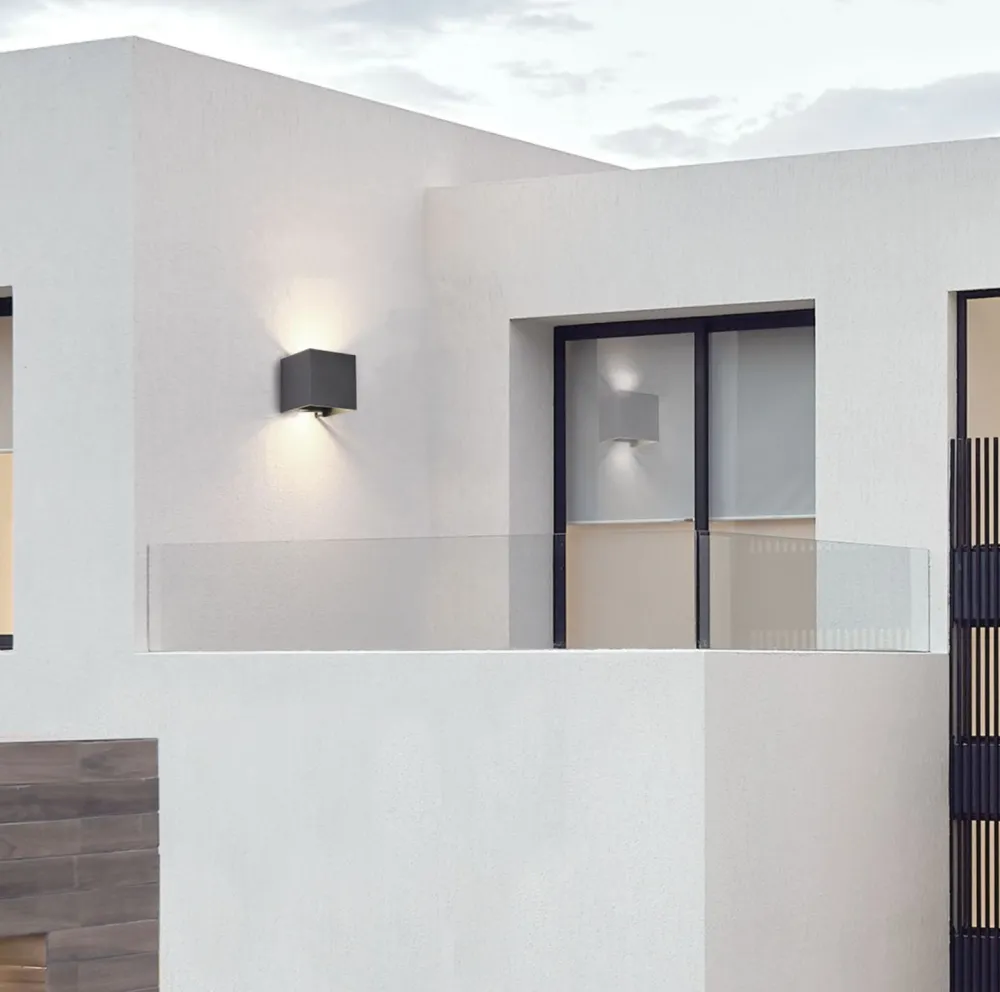 Die Wandleuchte sorgt dank einstellbarer Abstrahlwinkel für eine individuelle Beleuchtung nach oben und unten (Up Down Lampe) – ideal als Fassadenstrahler neben dem Eingang