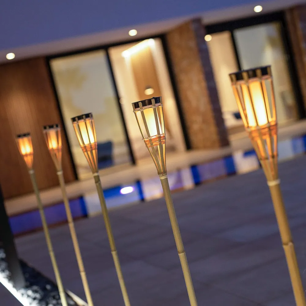 Dekorative Fackel aus Bambus mit Erdspieß und Solar für den Garten