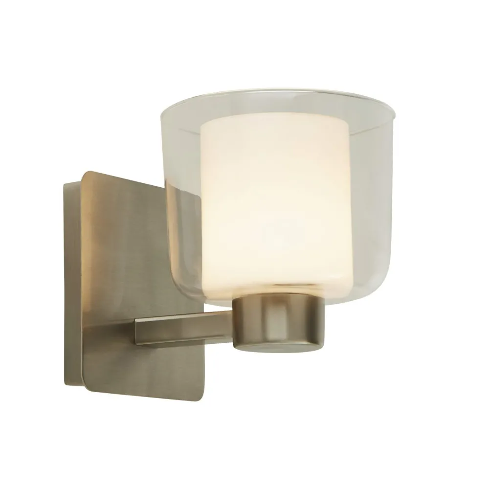 Das Licht wird durch den satinierten Glasschirm blendarm gestreut und sorgt für eine angenehme Beleuchtung – ideal neben dem Spiegel