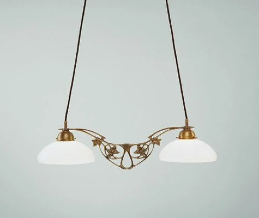 Jugendstil Pendelleuchte aus Messing und Glas