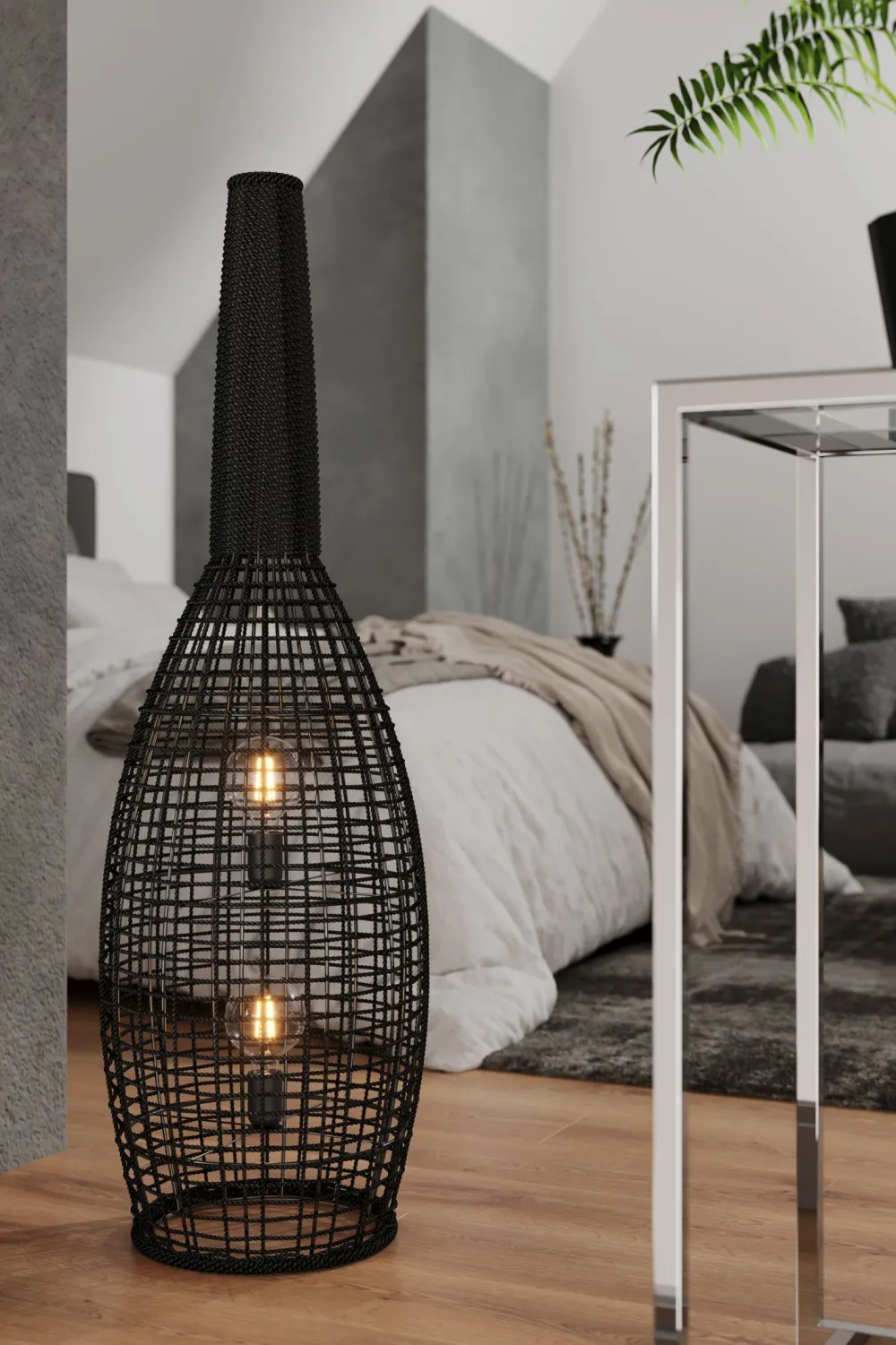 Die kleine Boho Stehlampe besticht durch den kunstvollen Korb Lampenschirm, der in jedem Wohnzimmer und Schlafzimmer zu einem außergewöhnlichen Blickfang wird