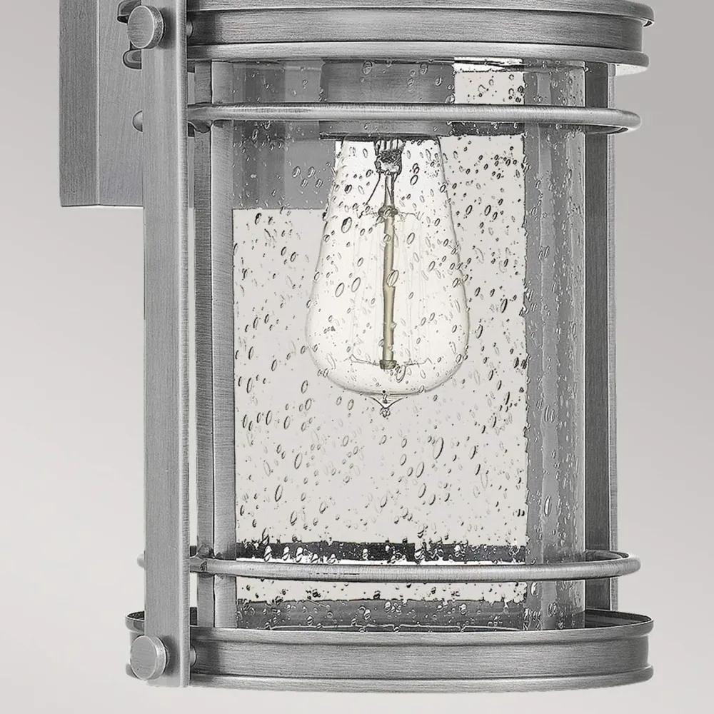Die außen Wandleuchte besticht durch die eleganten Details und die gebürstete Farbe, die den Eindruck einer antiken Wandlaterne erwecken – ein dekorativer Blickfang an jeder Fassade