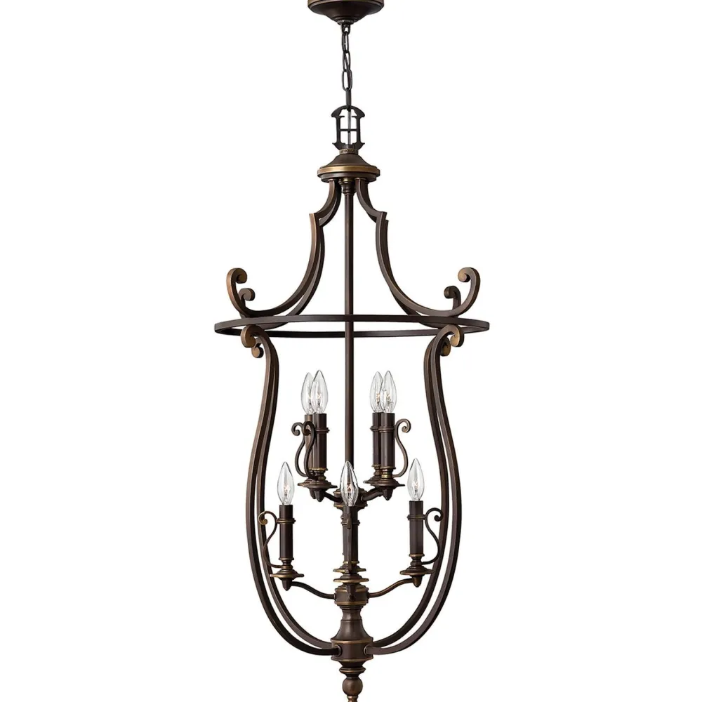 Die Pendelleuchte ist an einer kürzbaren Kette (305cm) aufgehängt und dadurch in der Höhe verstellbar: auch für sehr hohe Decken geeignet