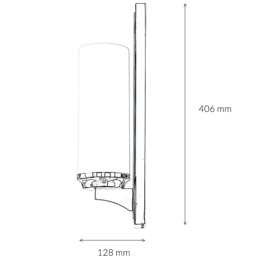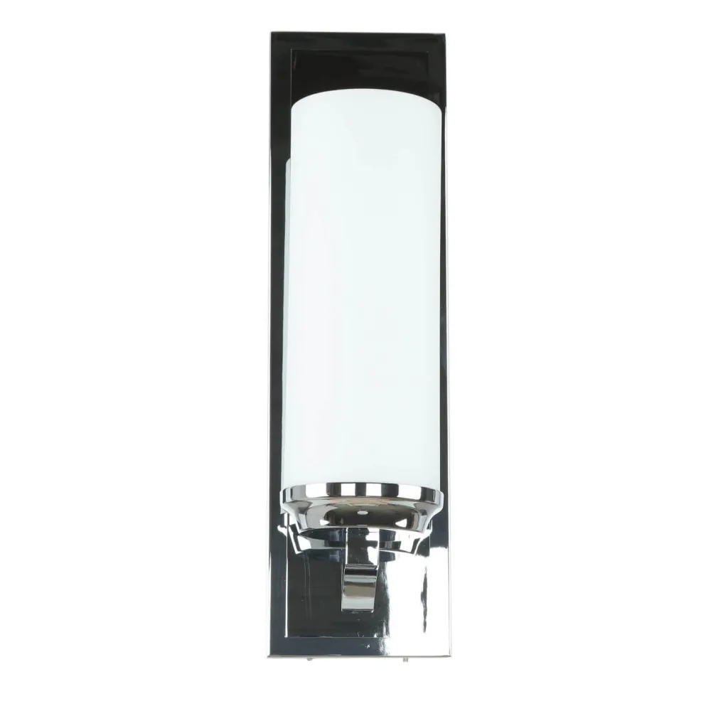 Die klassischen Farben Weiß und Chrom machen die Wandleuchte zu einem vielseitigen Lichtspender neben jedem Spiegel