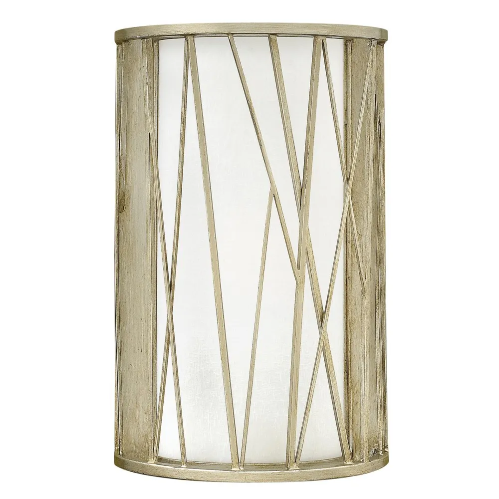 Ein geometrisches Gitter aus Metall sowie die Veredelung mit Blattsilber machen die Wandlampe zu einem dekorativen Highlight
