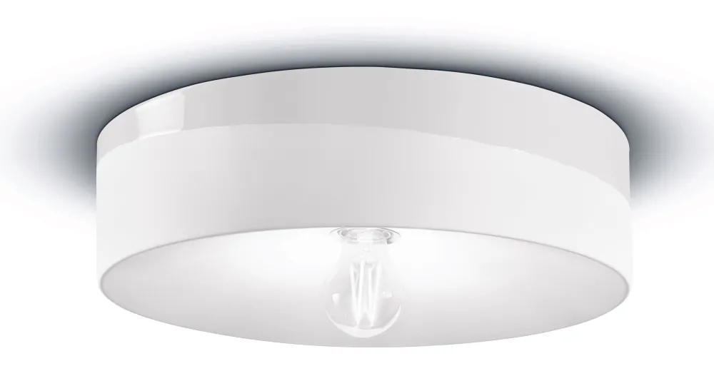 Die Kombination aus glänzend und matt verleiht der runden Deckenlampe einen außergewöhnlichen Charakter, der in Wohnzimmer, Küche und Flur zu einem dekorativen Blickfang wird