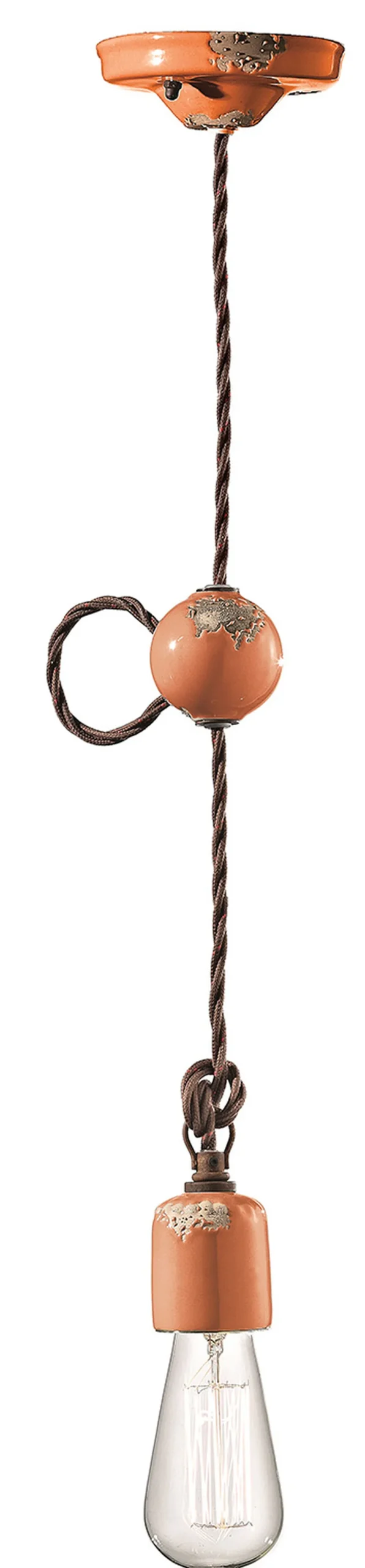Verstellbare Pendelleuchte aus Keramik und Metall in kräftigem Orange