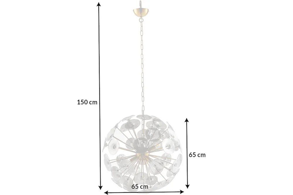 | Maße: | Breite: 650 mm | Hängetiefe: 1500 mm | Länge: 650 mm | Durchmesser: 650 mm | Durchmesser Schirm: 650 mm |