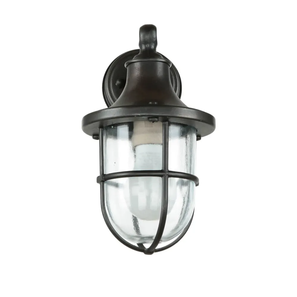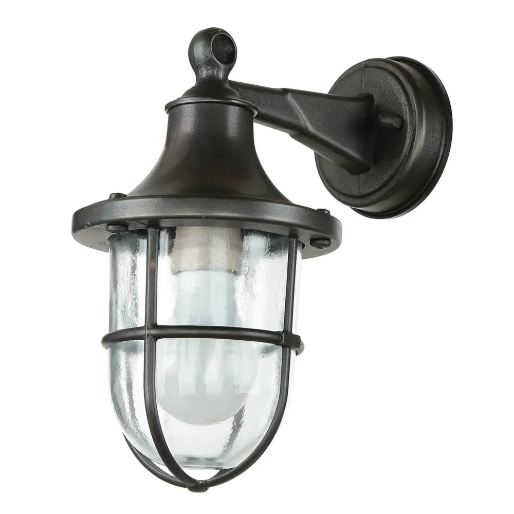 Rustikale Außenwandleuchte aus massivem Messing und Glas