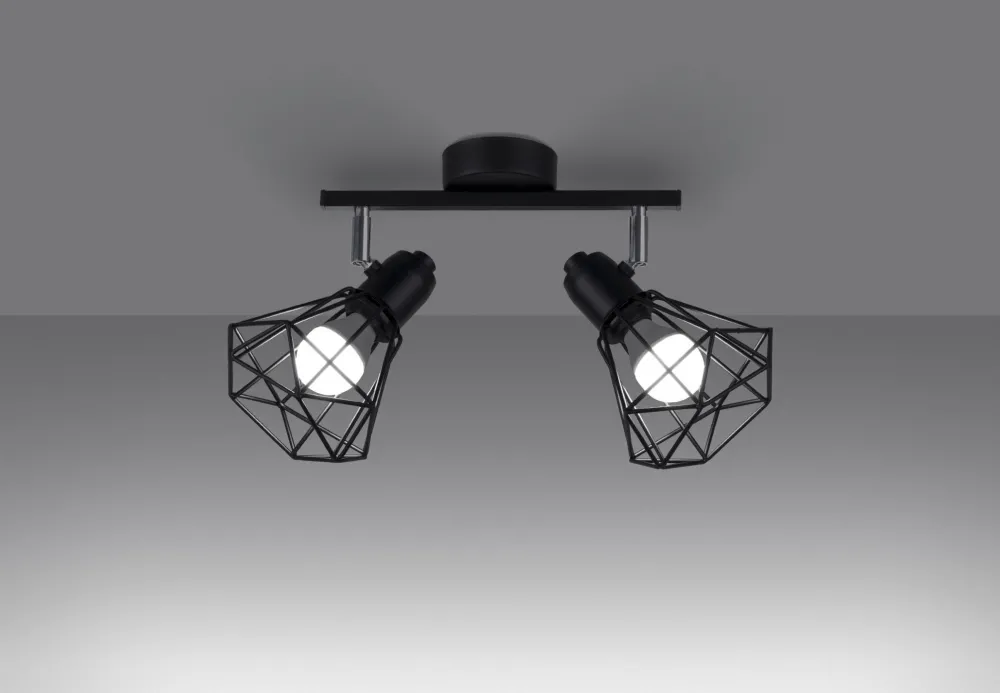 Schwarzer Deckenstrahler mit Draht Schirmen