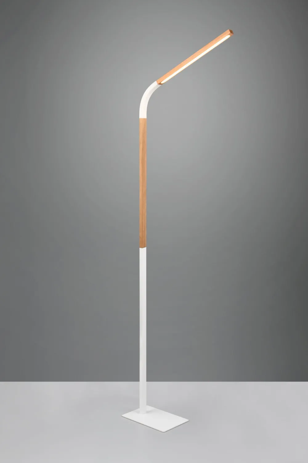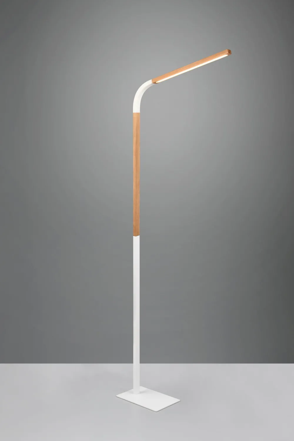 Skandinavische LED Stehleuchte aus Metall und Holz in Weiß