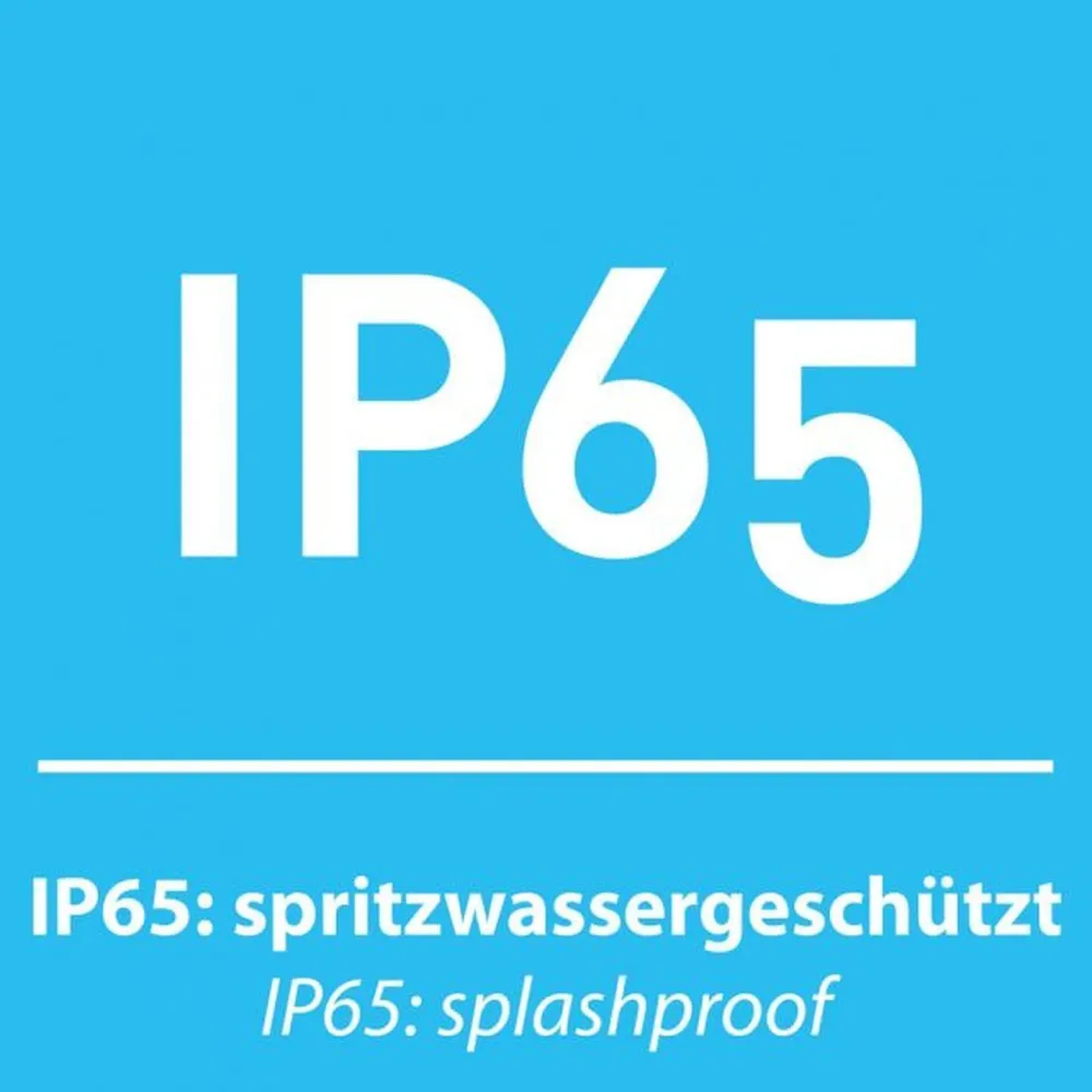 IP65: Schutz vor allseitigem Spritzwasser und staubdicht – ideal für den Außenbereich