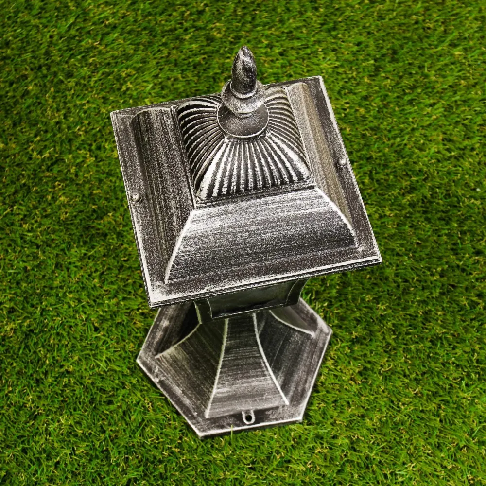 Rustikale Sockelleuchte für Außen in Silber Antik