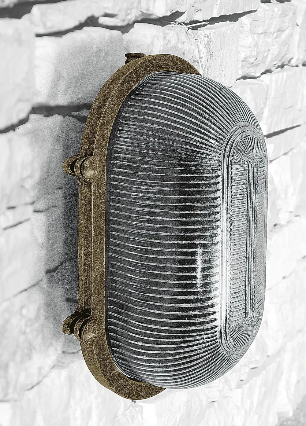 Maritime Außenwandleuchte aus massivem Messing und kunstvollem Riffelglas in verwittertem Messing: ideal als Haustür Lampe, Terrassenbeleuchtung, Balkon Lampe, Carport Beleuchtung und Garagenlampe