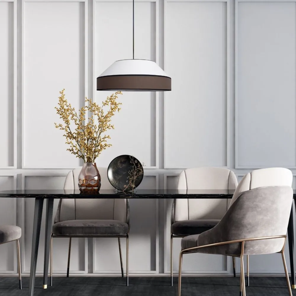 Qualität Made in EU Entdecke die moderne Pendelleuchte KNITZU – ein stilvolles Highlight für dein Zuhause! Mit ihrem eleganten, zweifarbigen Design und einem Durchmesser von 450 mm fügt sich diese Hängelampe harmonisch in jedes Wohnambiente ein. Ob über dem Esstisch im Wohnzimmer oder im Esszimmer, die KNITZU sorgt für eine einladende Lichtstimmung, die zum Verweilen einlädt. Die KNITZU Pendelleuchte ist nicht nur ein optisches Highlight, sondern überzeugt auch durch ihre Funktionalität. Der blendarme Schirm streut das Licht warm und weich, wodurch eine gemütliche Atmosphäre entsteht. Ideal für gesellige Abende mit Freunden oder entspannte Familienessen. Mit einer Hängetiefe von 880 mm ist sie sowohl für hohe als auch niedrige Decken geeignet und passt sich somit flexibel deinem Raum an. Dank der hochwertigen Verarbeitung und der Qualität Made in EU ist die KNITZU Pendelleuchte eine zuverlässige Wahl für dein Zuhause. Sie ist für den Innenbereich (IP20) konzipiert und wird mit 230V versorgt. Die Lampe ist für ein E27 Leuchtmittel bis 60W ausgelegt, sodass du die Lichtstimmung ganz nach deinen Wünschen gestalten kannst. Egal, ob du nach Esstischlampen modern suchst oder eine stilvolle Wohnzimmerlampe benötigst – die KNITZU ist die perfekte Wahl. Sie vereint modernes Design mit Funktionalität und ist ein echter Blickfang in jedem Raum. Lass dich von der KNITZU inspirieren und bringe frischen Wind in dein Zuhause!
