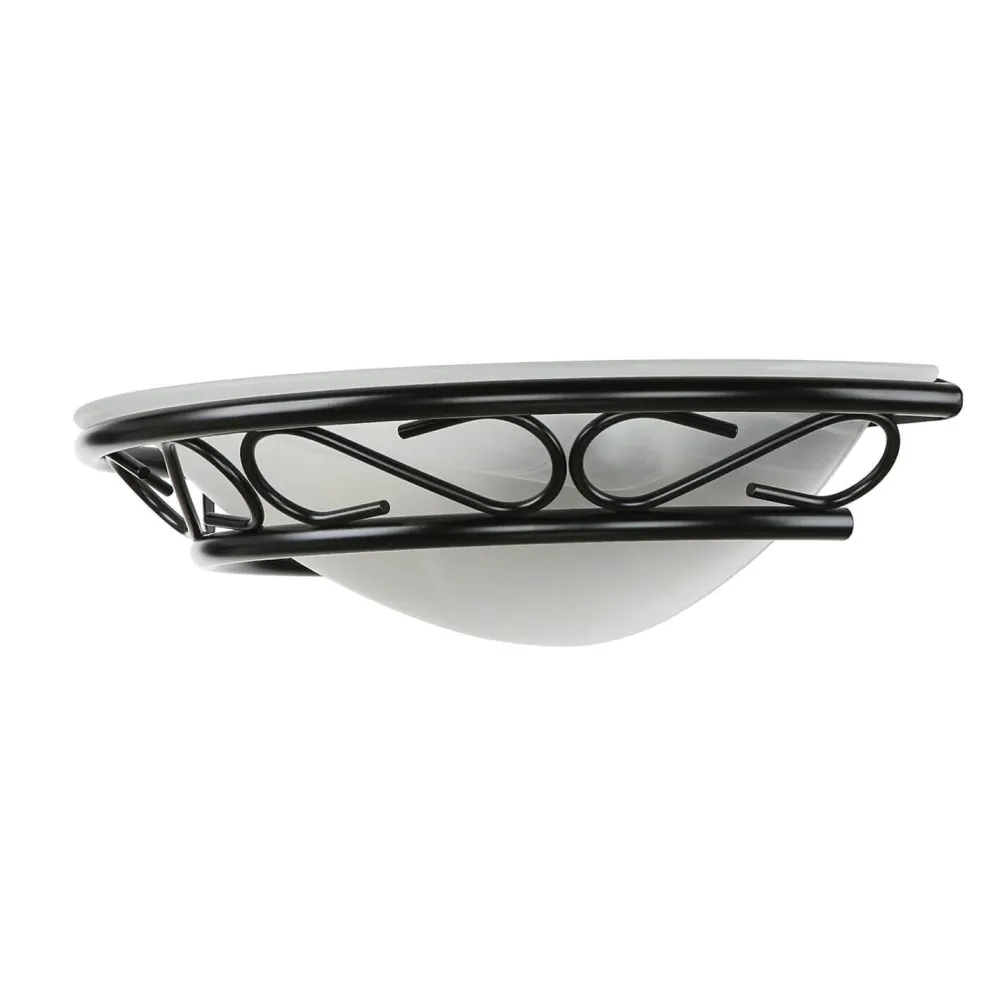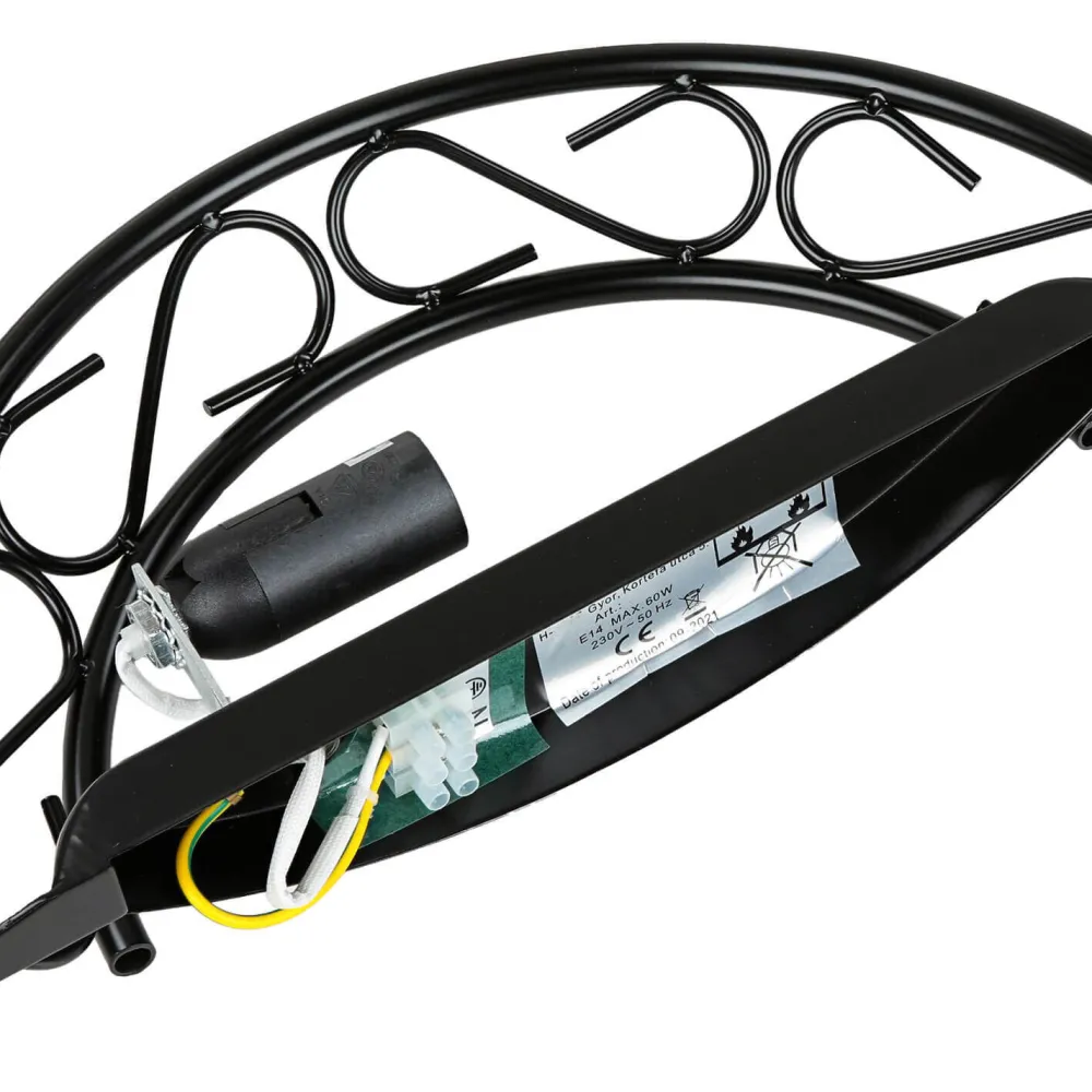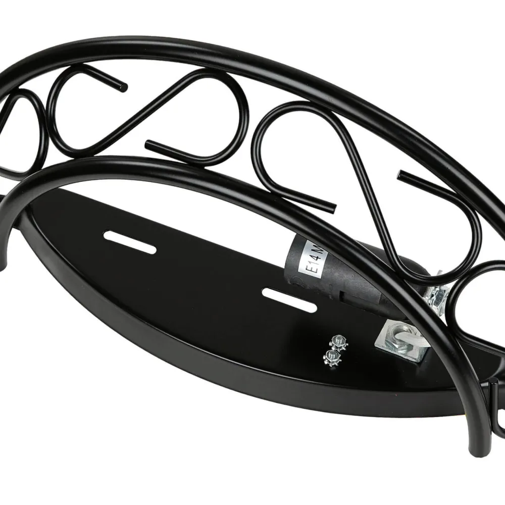 Das schwarze Metall erinnert an massives Schmiedeeisen, was den antiken Look der Wandleuchte weiter betont