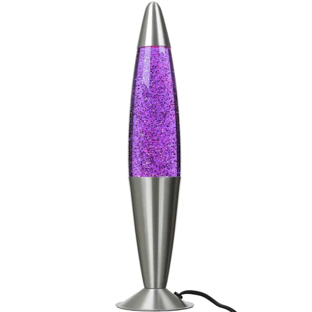 Eine Lavalampe mal anders: jede Menge beweglicher Glitter in lila Flüssigkeit versprüht Freude pur
