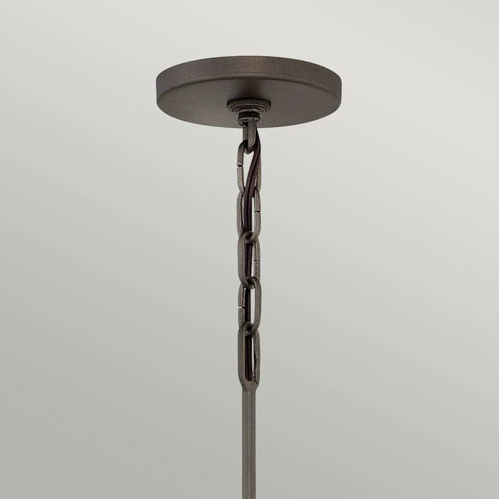 Die Hängelampe ist an einer kürzbaren Kette (305 cm) aufgehängt und dadurch in der Höhe verstellbar: perfekt über dem Esstisch