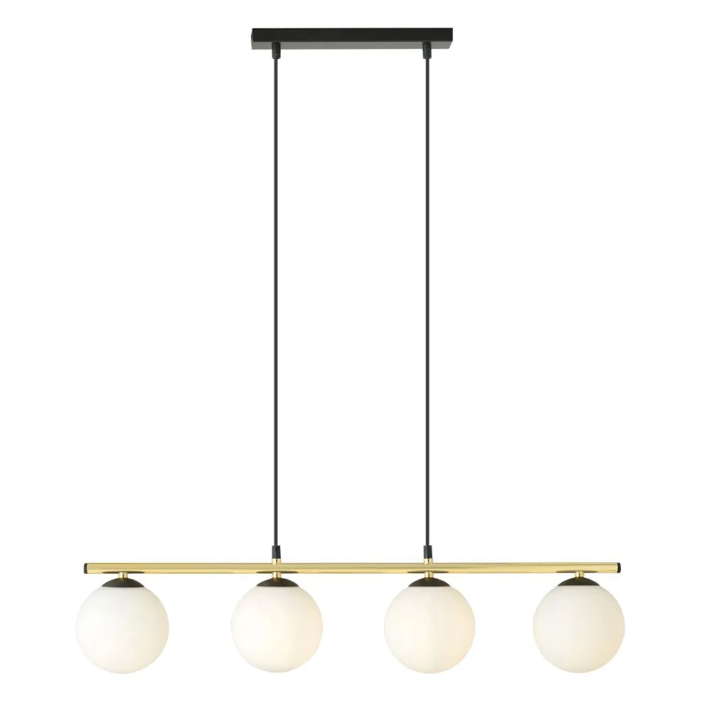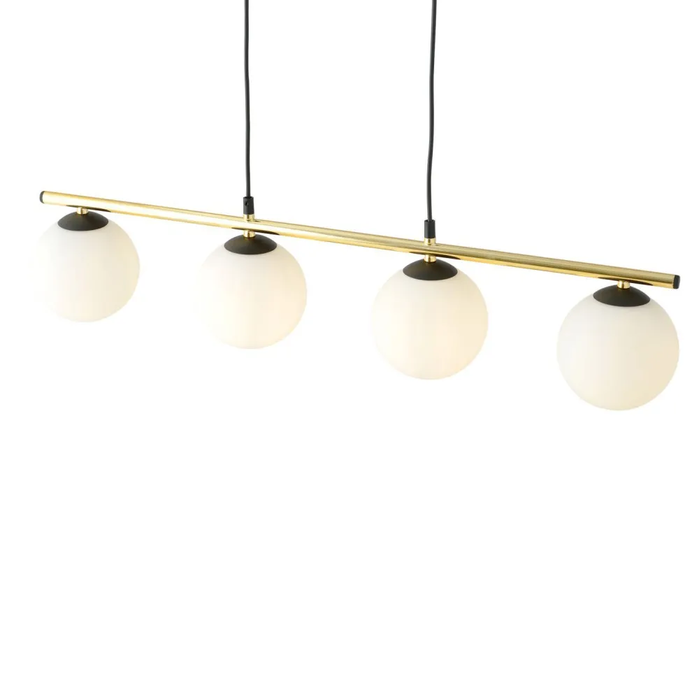 Die längliche Hängeleuchte sorgt für eine blendarme Beleuchtung und passt ideal über den Esstisch