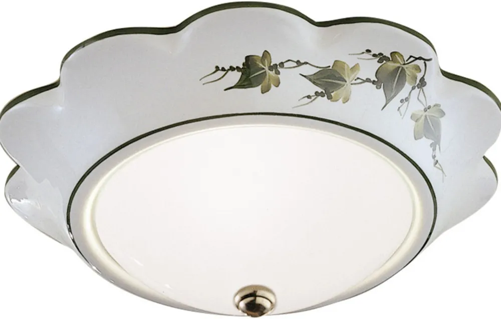 Romantische Deckenleuchte aus satiniertem Glas und kunstvoll gestaltetem Keramik im Landhaus Stil