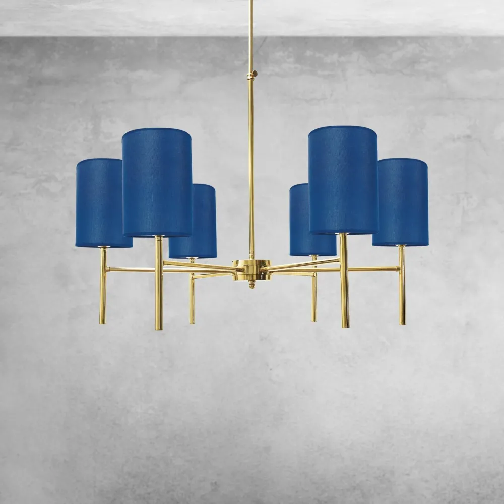 Großer Kronleuchter aus massivem Messing und Stoff