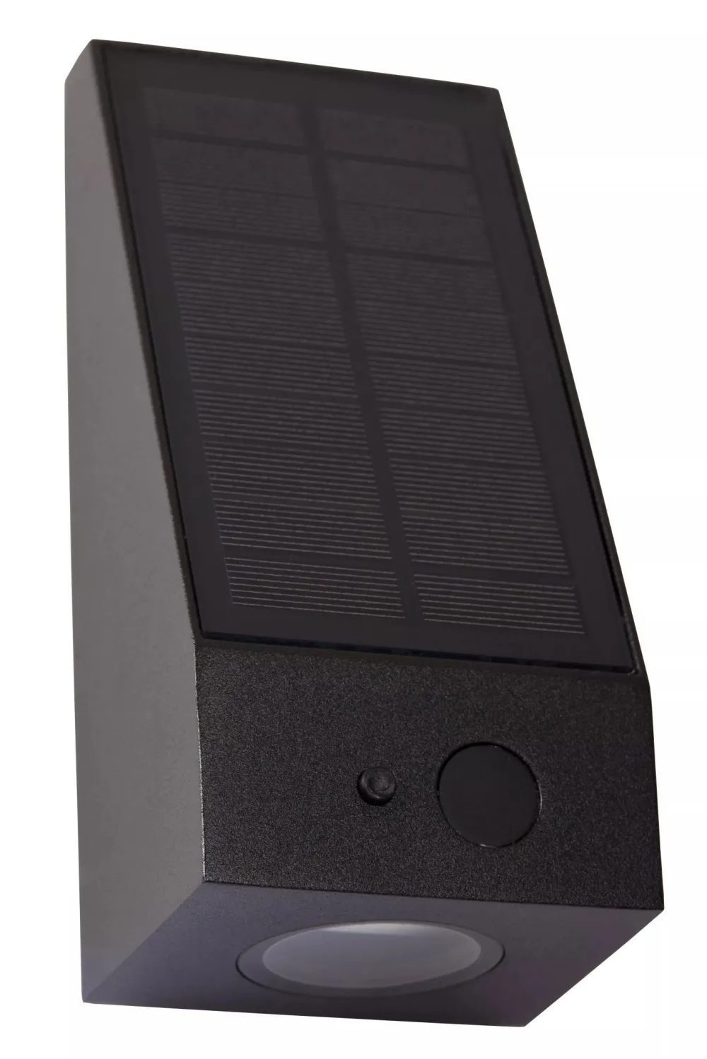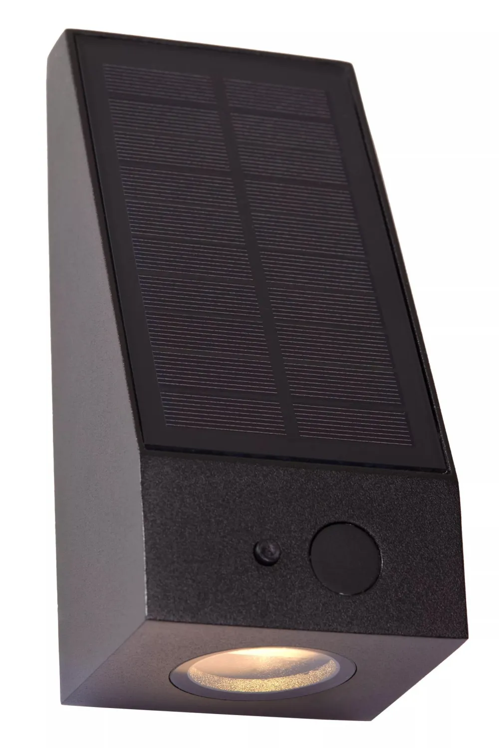 Zeitlose LED Solar Außenwandleuchte mit Bewegungsmelder aus Aluminium in Schwarz