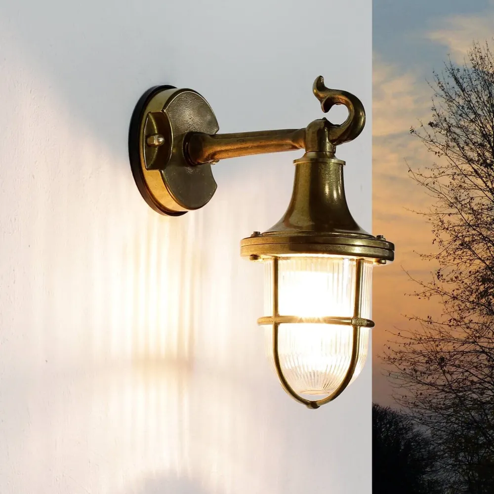 Rustikale Außenwandleuchte aus massivem Messing und Glas
