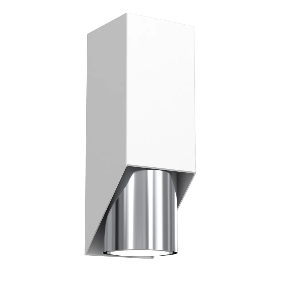 Moderne Wandlampe aus lackiertem Stahl in Weiß und Chrom