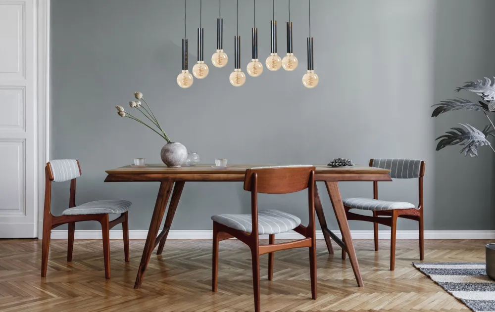 Die Hängelampe sorgt für eine direkte Beleuchtung und ist ideal für Küche, Wohnzimmer und Esszimmer
