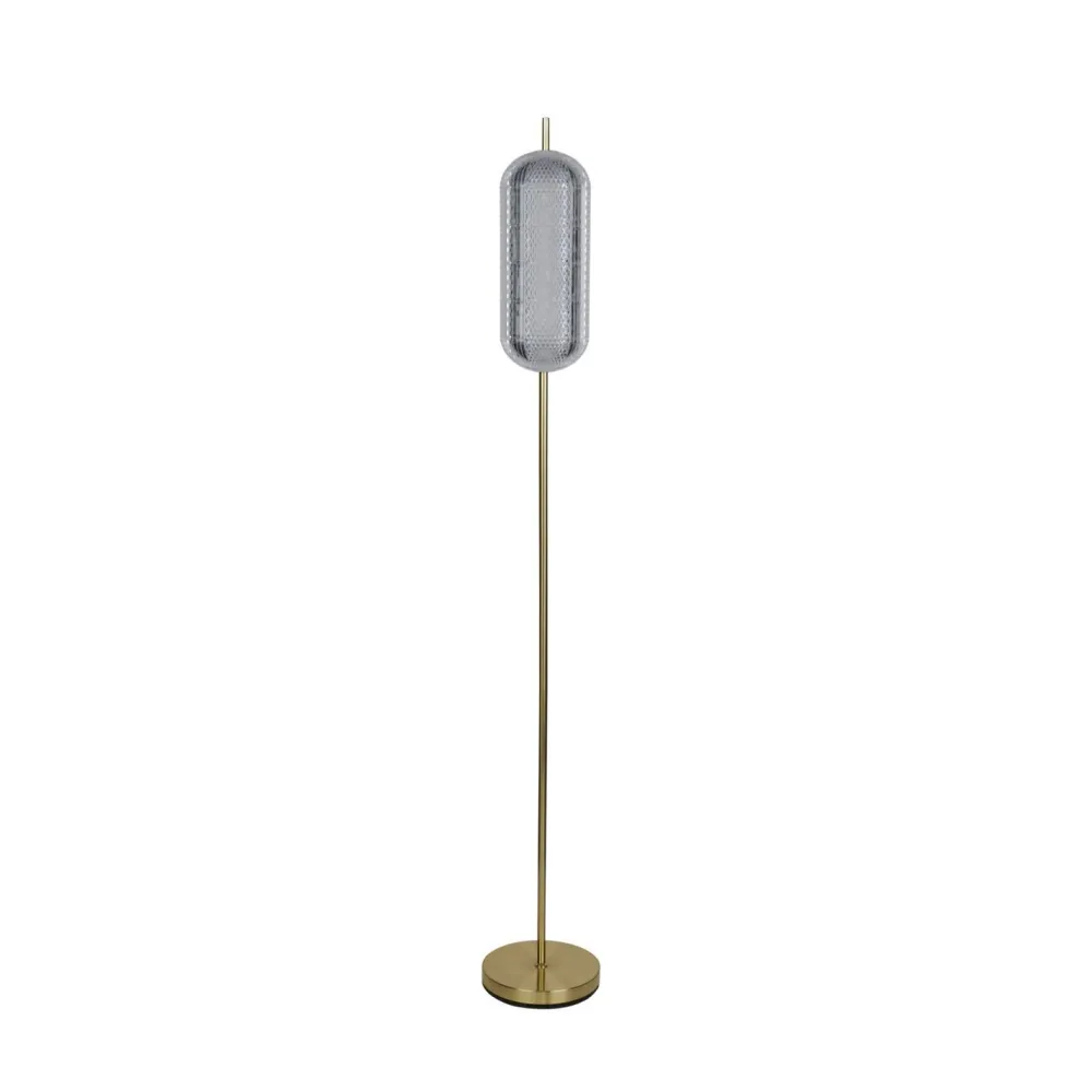 Moderne LED Stehleuchte aus Metall und Kunststoff in Messing