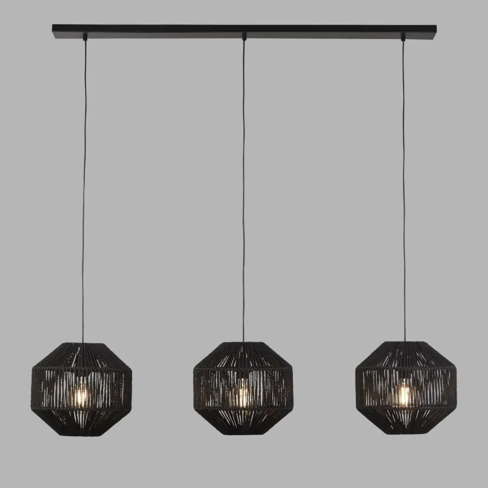 Dekorative Pendelleuchte mit kunstvollem Lampenschirm aus schwarzem Seil