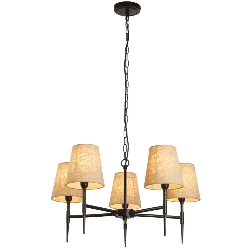 Rustikaler Kronleuchter im mittelalterlichen Design aus gehämmertem Metall und Stoff
