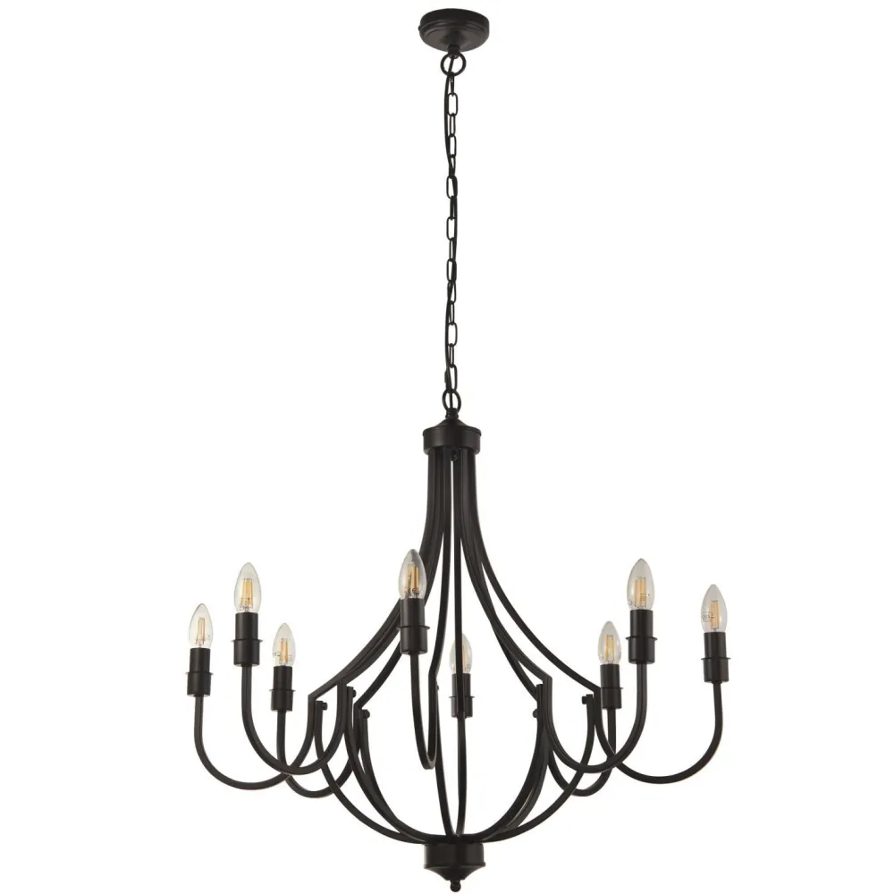 Das Schwarz betont den Look eines antiken Lüsters und erweckt den Eindruck einer schmiedeeisernen Leuchte aus längst vergangener Zeit – ein dekorativer Blickfang für Wohnzimmer und Esszimmer