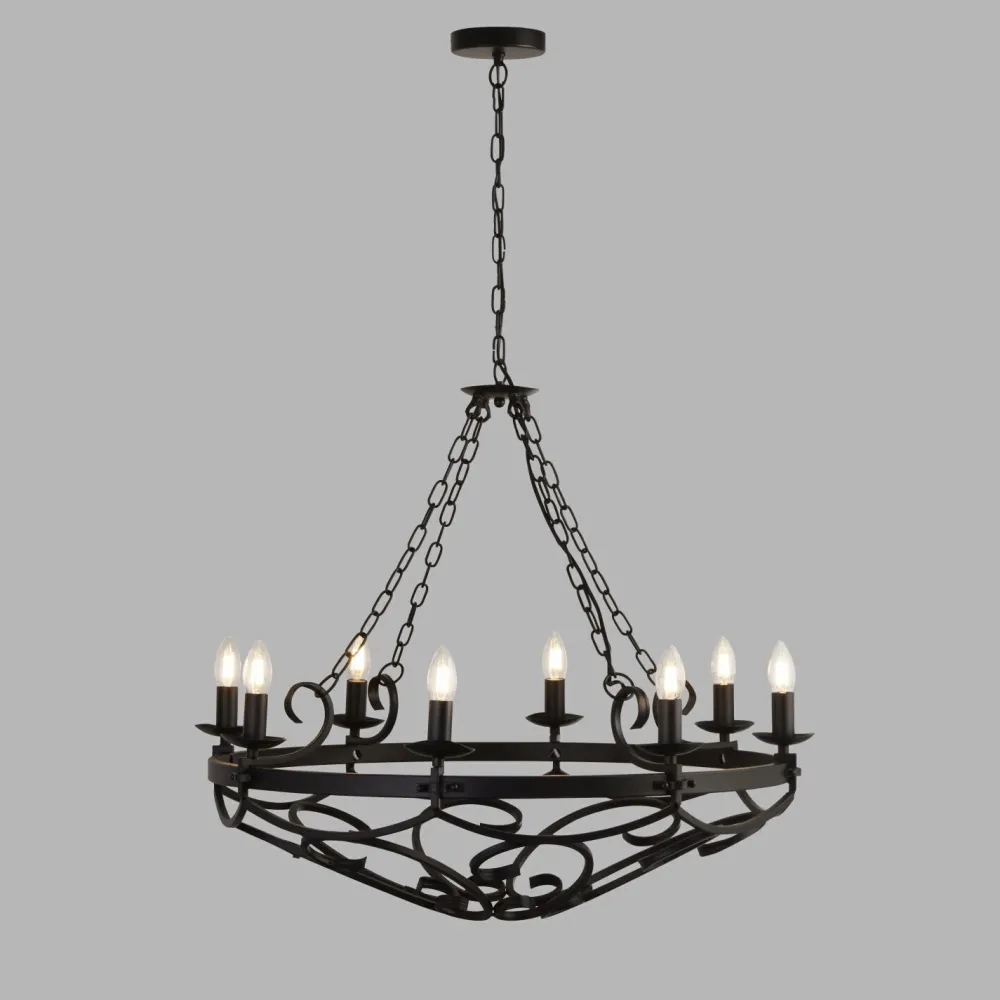 Das mittelalterliche Design erinnert an historische Lüster aus Burgen und Schlössern des Dunklen Zeitalters, was in jedem Raum zu einem dekorativen Blickfang wird