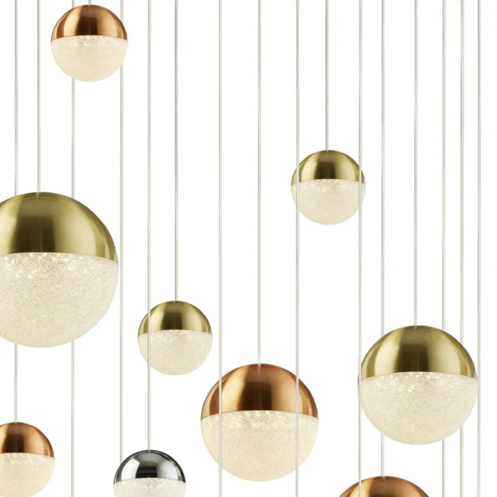 Große Pendelleuchte mit farbenfrohen Kugelschirmen