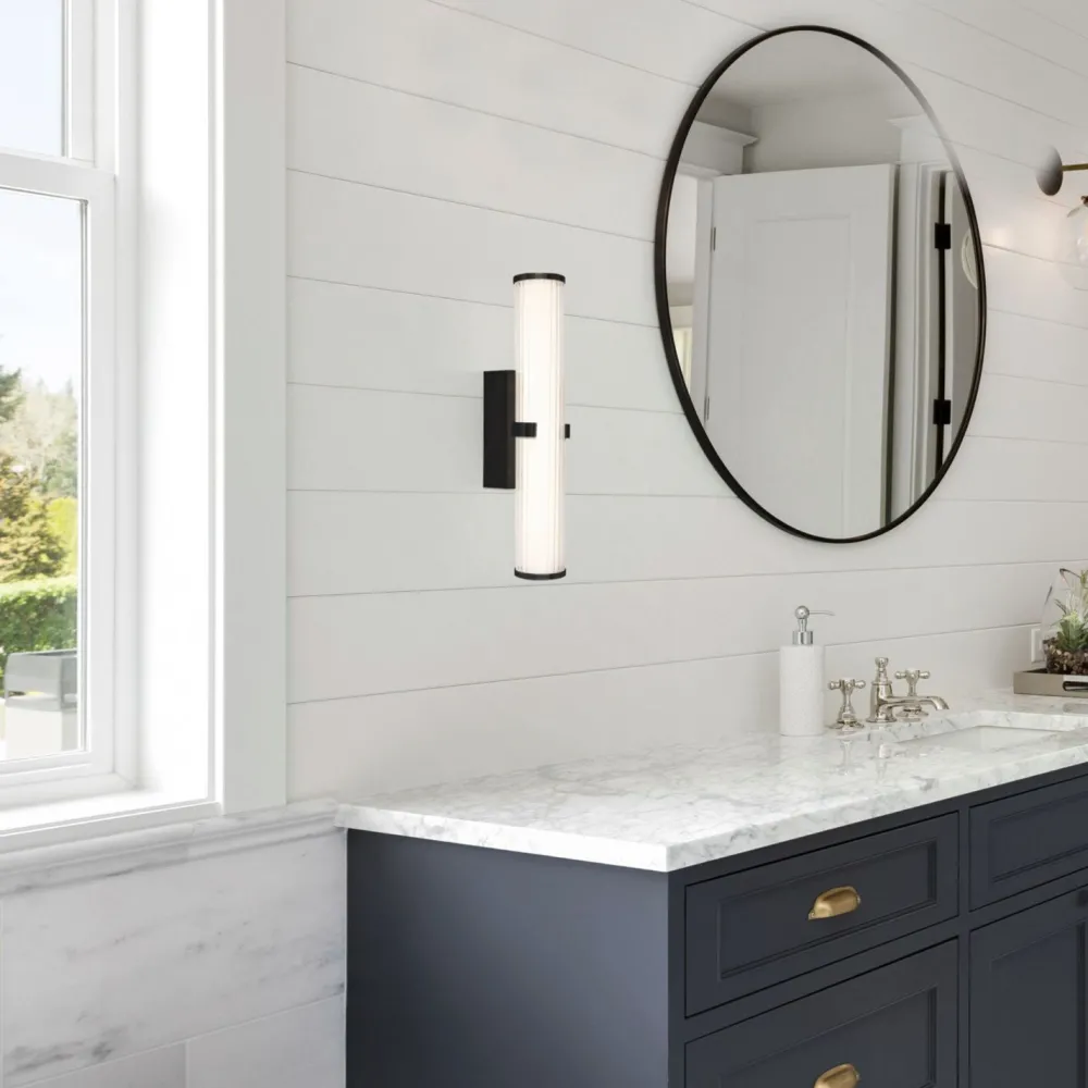 Das Licht wird durch den satinierten Glasschirm blendarm gestreut und sorgt für eine angenehme Beleuchtung – ideal neben dem Spiegel