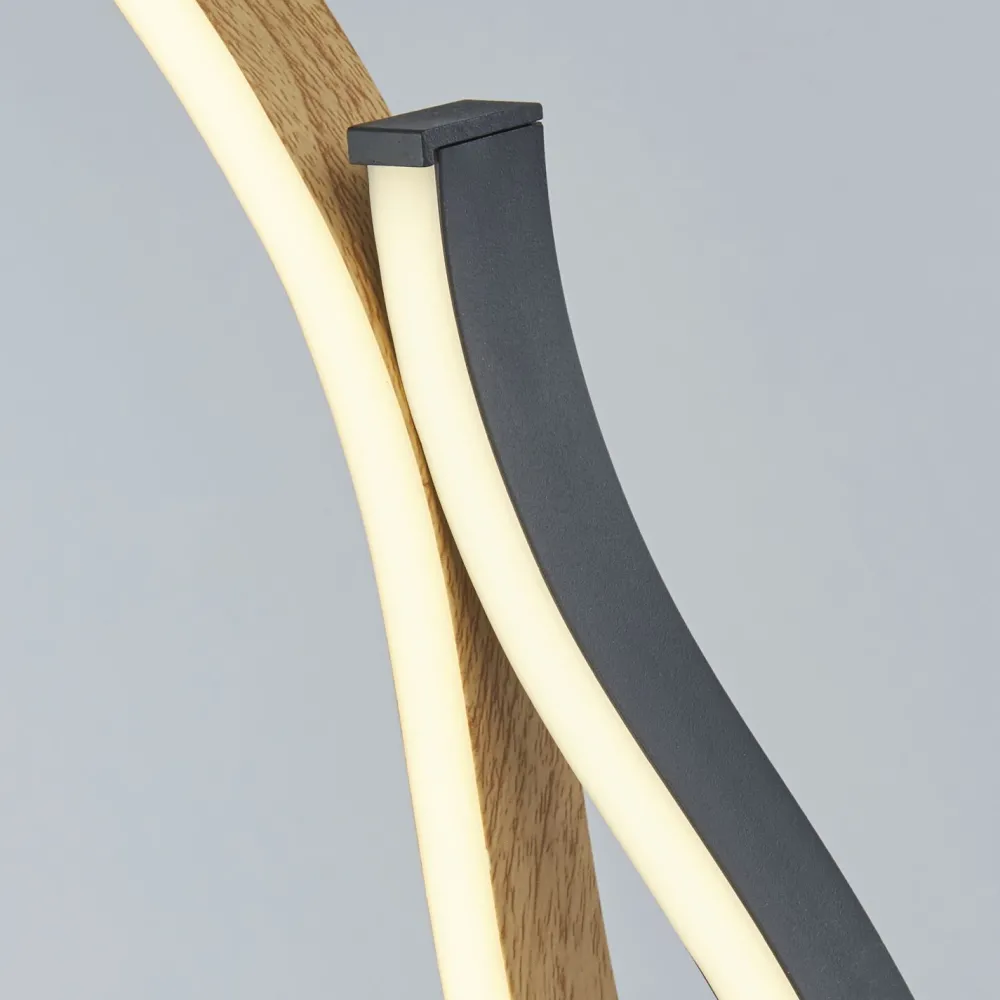 Moderne LED Tischleuchte aus Stahl und Kunststoff in Schwarz und Natur