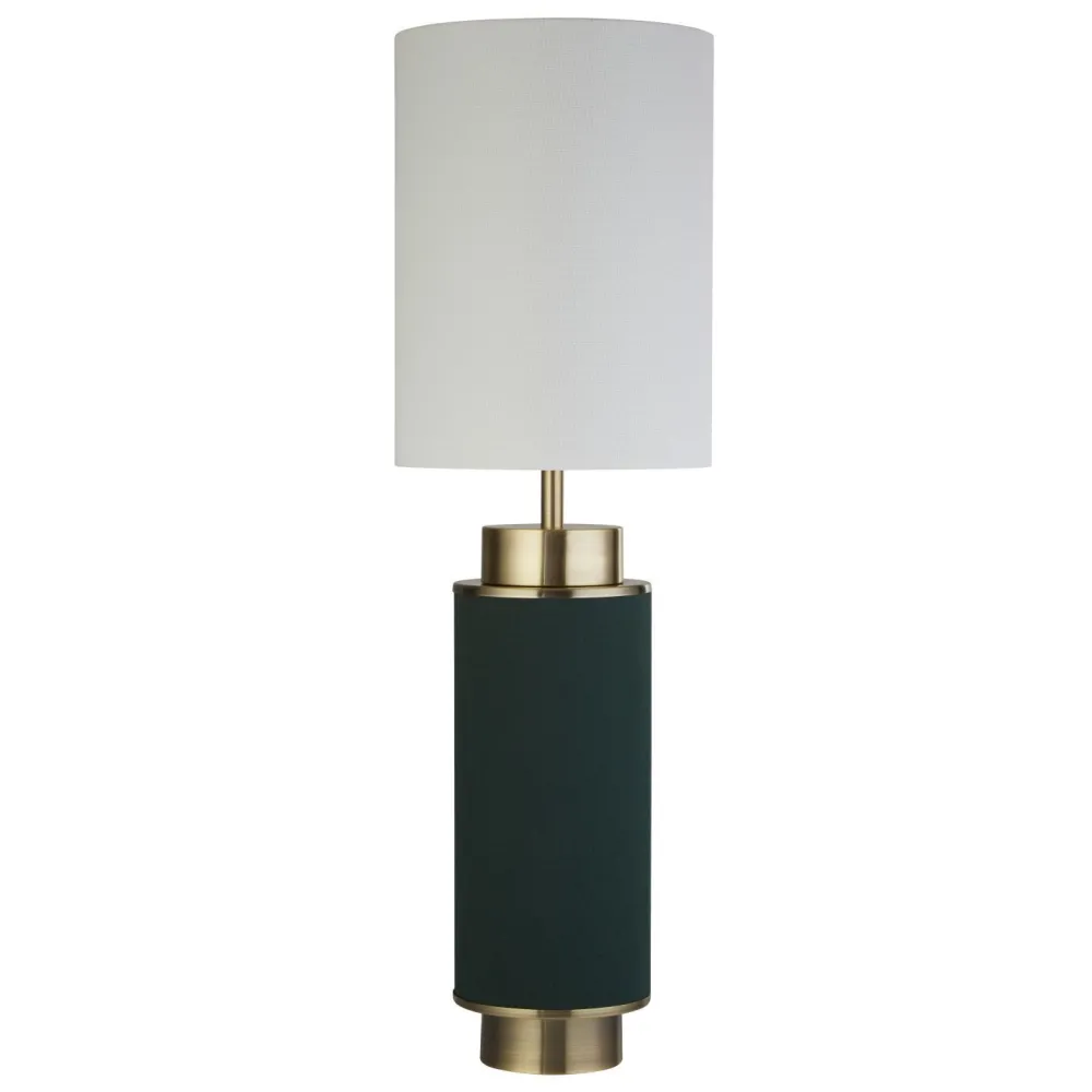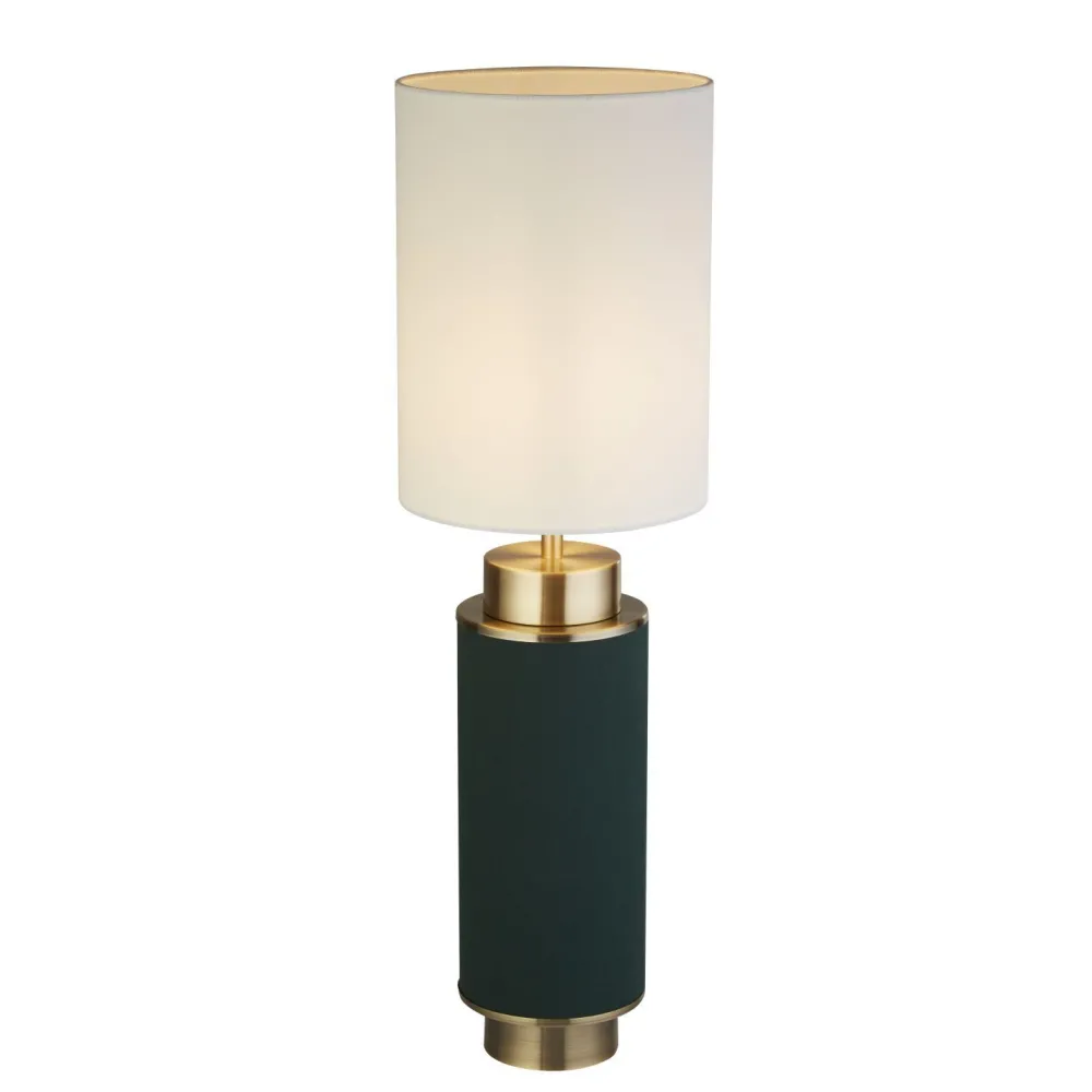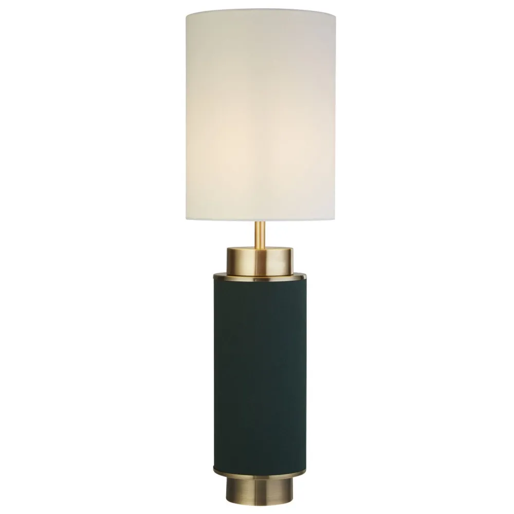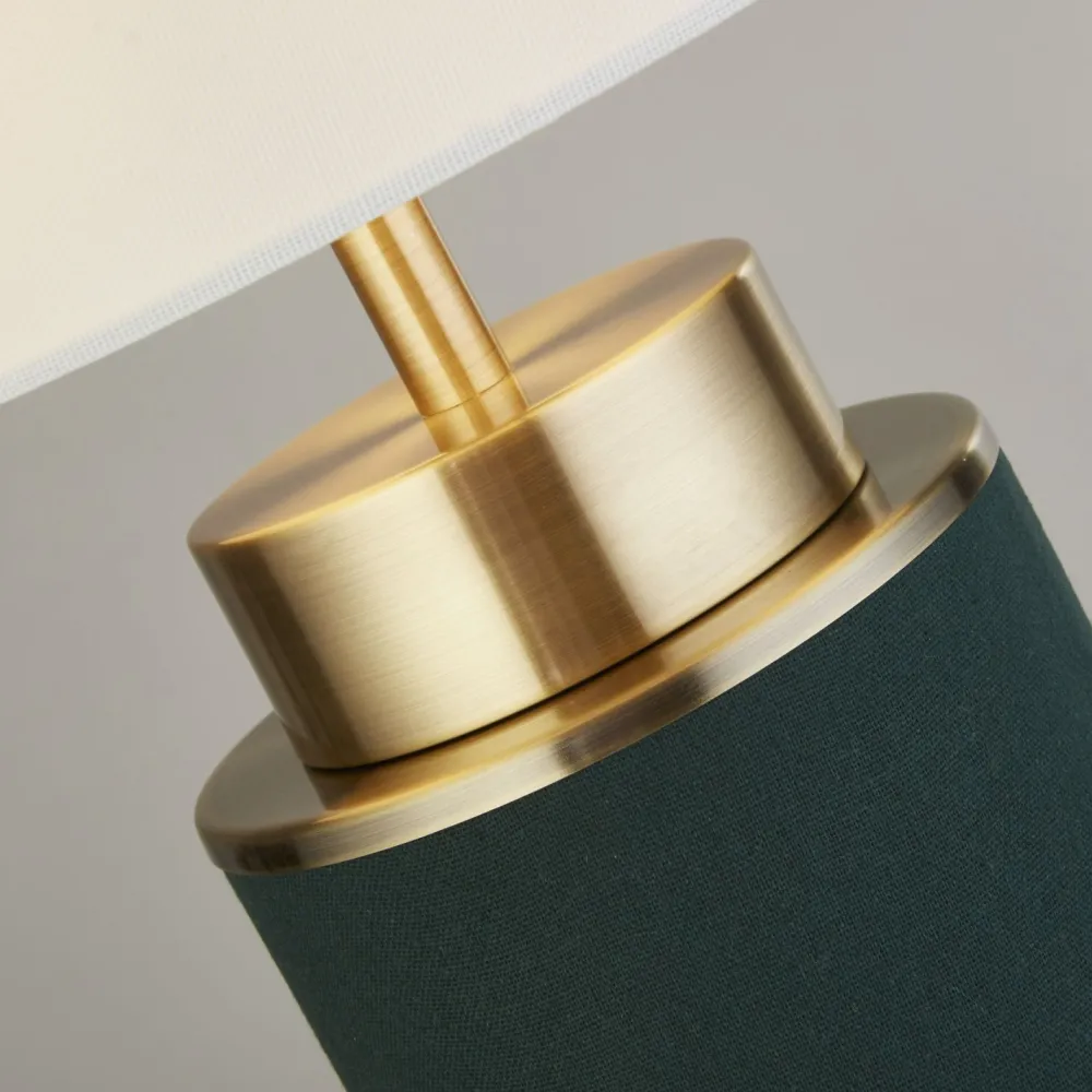 Das dunkle Grün in Kombination mit Akzenten in Messing verleiht der Tischlampe einen edlen Look, der auch in Hotels und Restaurants für ein besonderes Ambiente sorgt