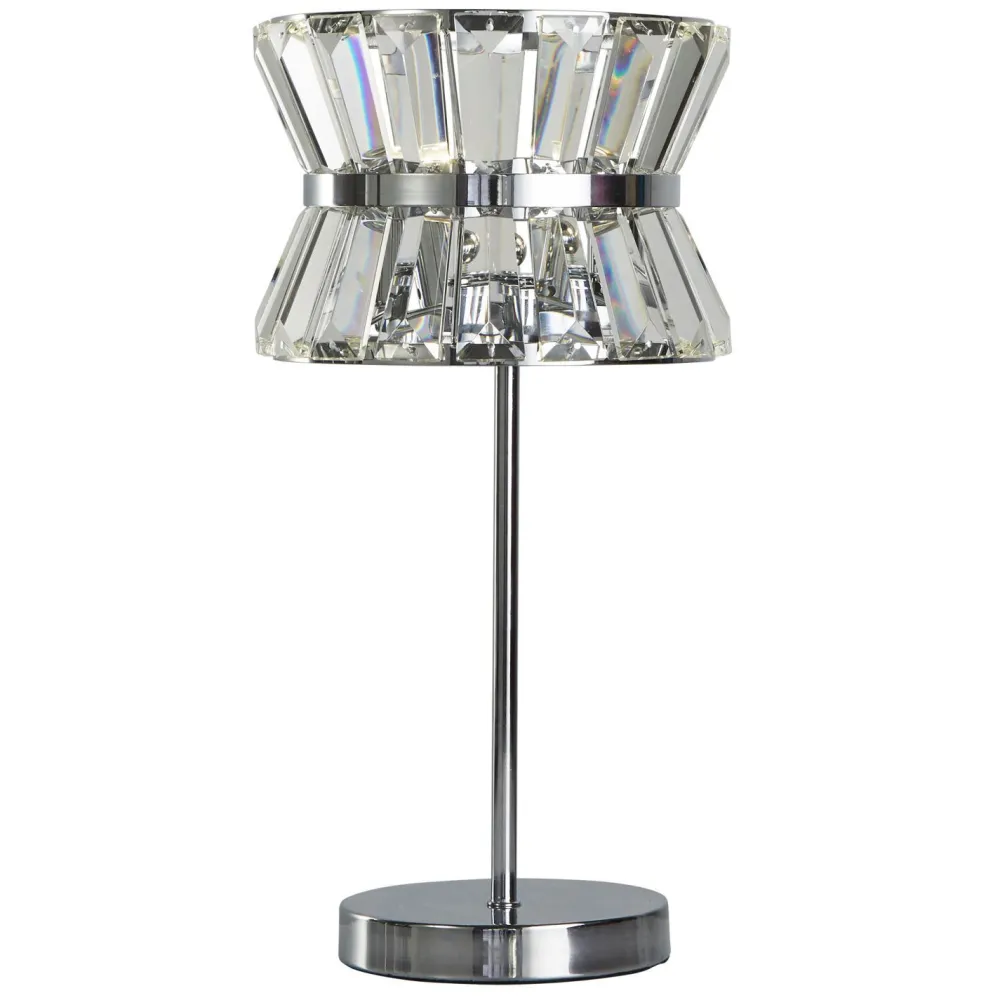 Die funkelnden Glaskristalle sorgen für einen dekorativen Look und verleihen der Tischleuchte einen edlen Charakter – ein absolutes Highlight in Schlafzimmer und Wohnzimmer