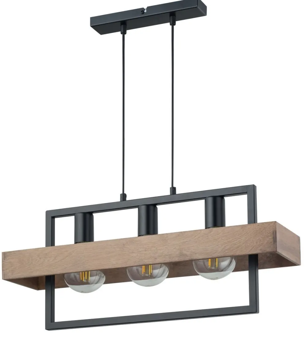 Das längliche Holzelement verleiht der Leuchte einen wohnlichen Look