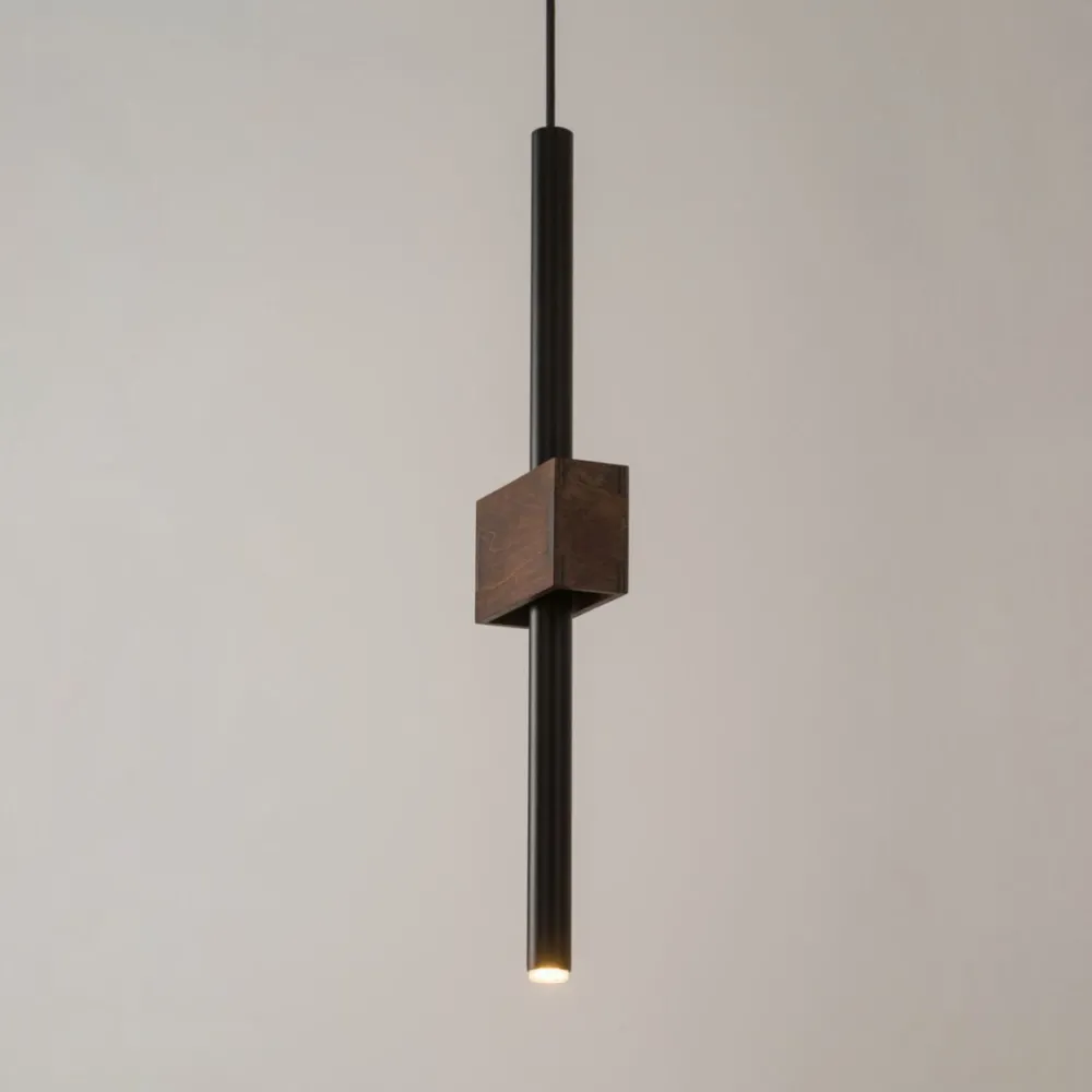 Moderne Design Hängelampe aus lackiertem Stahl und Sperrholz in Schwarz und Braun