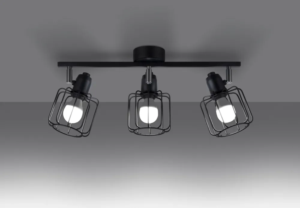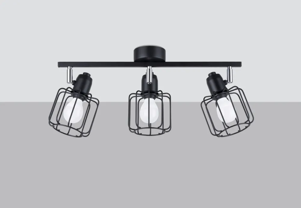 Schwarzer Deckenstrahler mit Draht Schirmen