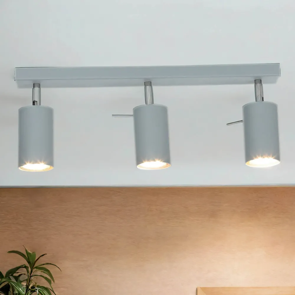 Moderner Deckenstrahler aus Metall in hellem Grau