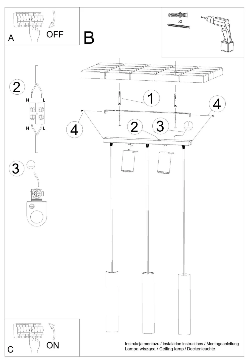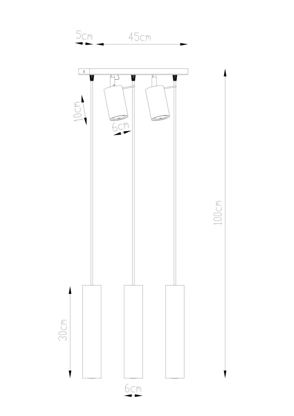 | Maße: | Breite: 50 mm | Hängetiefe: 1000 mm | Länge: 450 mm | Durchmesser Schirm: 60 mm | Höhe Schirm: 300 mm | Durchmesser Sockel/Wandhalterung: 60 mm |