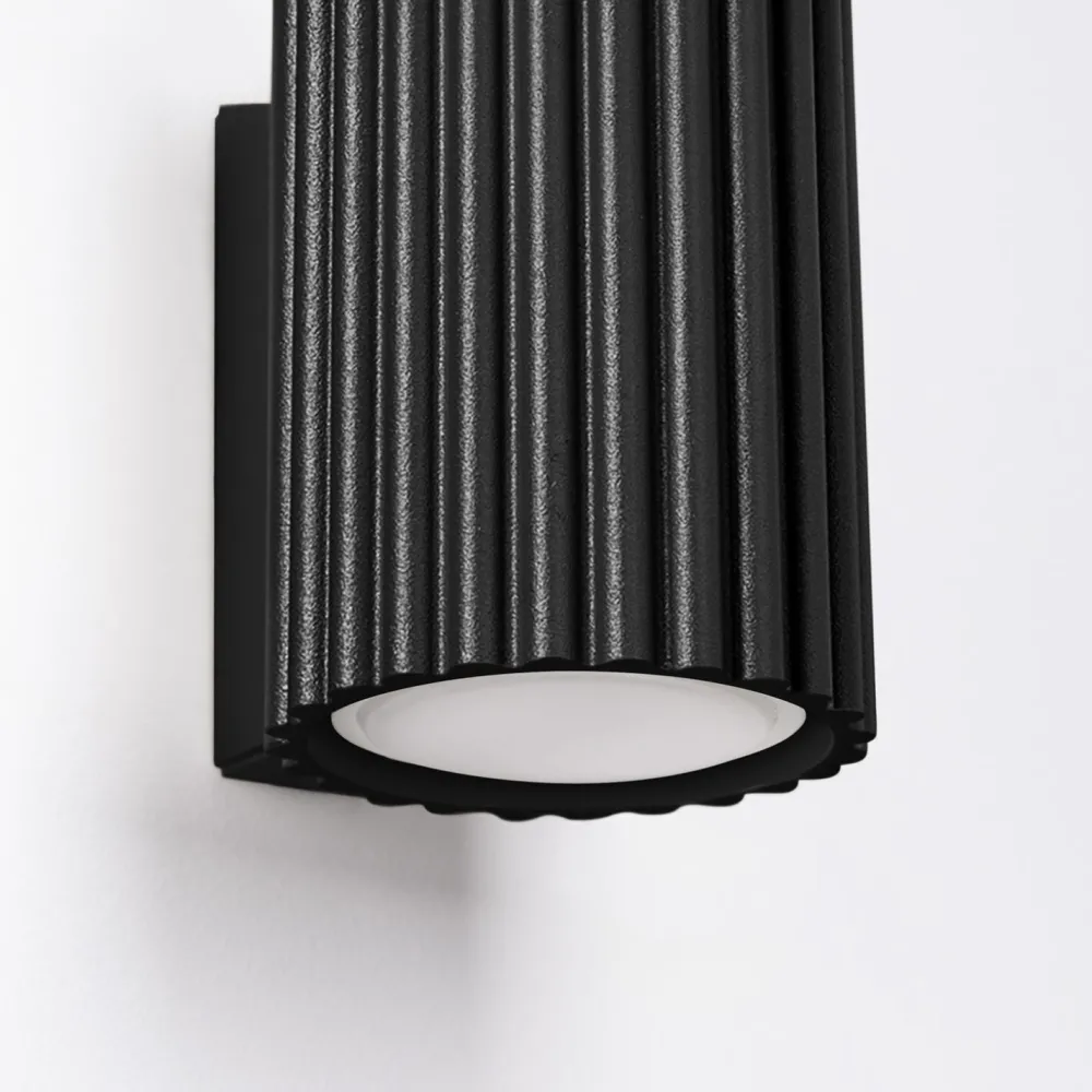 Kompakte Wandlampe aus Aluminium mit besonderem Lampenschirm in zeitlosem Schwarz